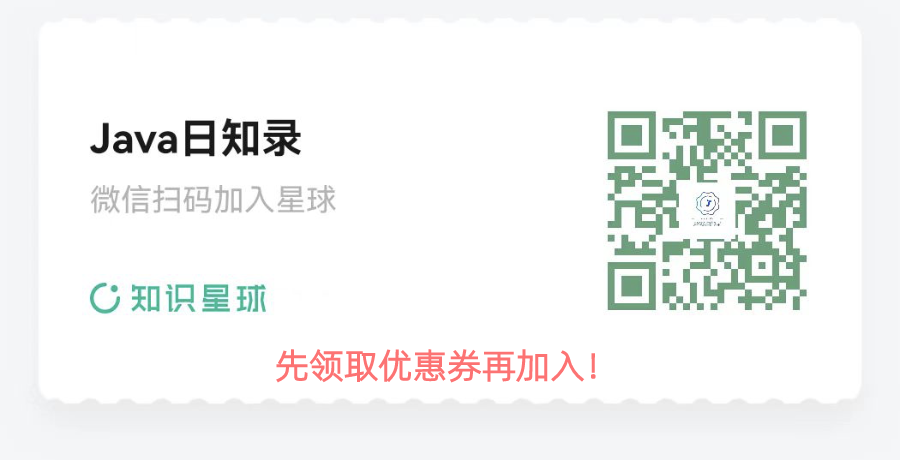 另外我的 知识星球 开通了,点击 知识星球 获取限量40元优惠券加入,每天不到3毛钱。目前更新了SpringCloud alibaba开发实战、Kubernetes云原生实战、分库分表实战、设计模式实战、一起学DDD 等,还有每周的送书活动等着你....