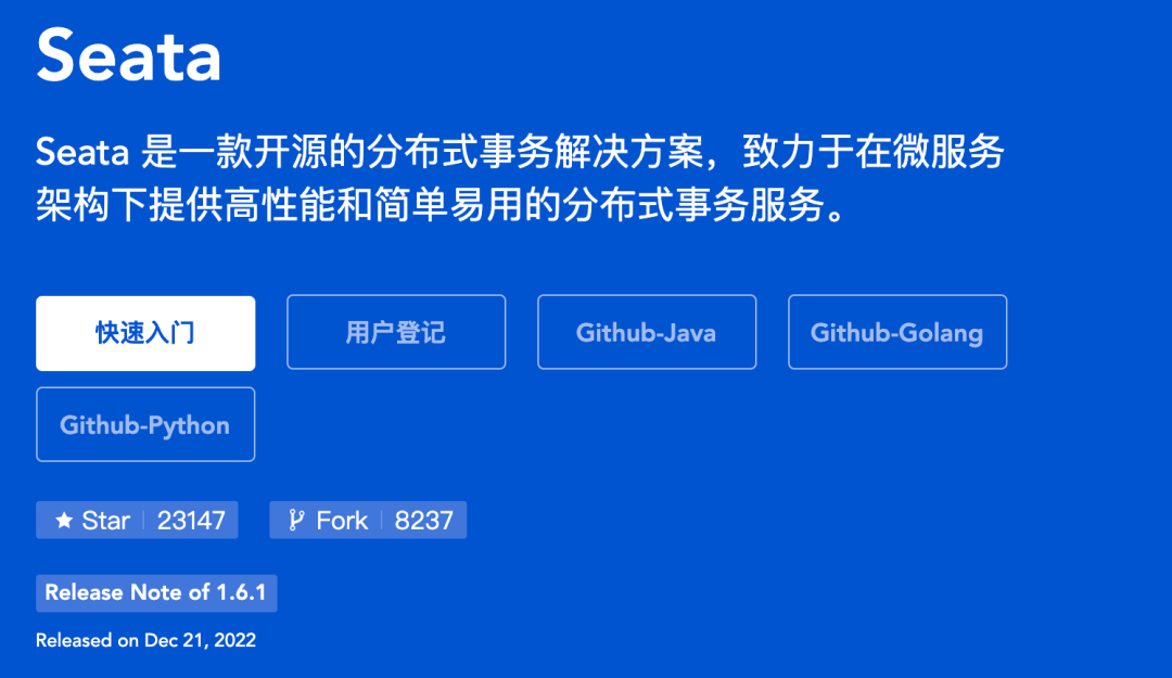Alibaba Seata 是一款开源的分布式事务解决方案,致力于在微服务架构下提供高性能和简单易用的分布式事务服务。它的官网是http://seata.io/,截止到目前 Seata 在 GitHub 已有 23147 star,最新版本已迭代到 1.6.0,阿里多年的技术沉淀让 Seata 的内部版本平稳渡过了多次双 11 的考验。2019 年 1 月为了打造更加完善的技术生态和普惠技术成果,Seata 正式宣布对外开源,未来 Seata 将以社区共建的形式帮助其技术更加可靠与完备,按官方的说法Seata目前已具备了在生产环境使用的条件。
