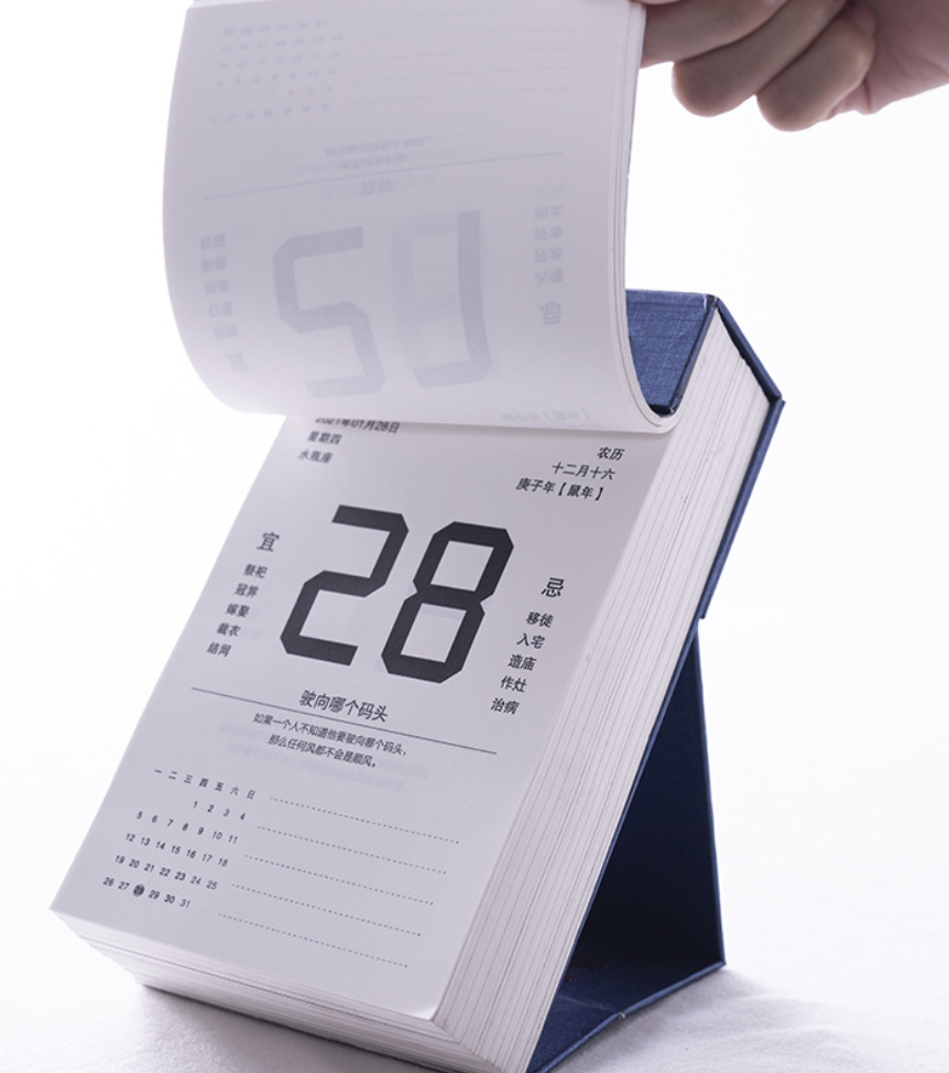 老的日历通常是挂在墙上,过了一天就把这一天的翻上去。