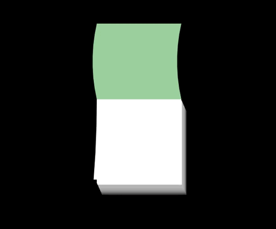 上半部分我们的侧边绘制一定的曲度,这样看着像翻过后卷起来的感觉。因为有部分卷起来了,因此高度会比下半部分低一些,曲度我们通过贝塞尔曲线控制,绘制的代码如下,这里有两个常量,一个是 topHeight