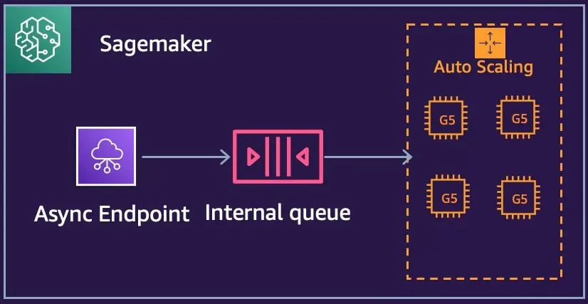 # application-autoscaling clientasg_client = boto3.client("application-autoscaling")# This is the format in which application autoscaling references the endpointresource_id = f"endpoint/{async_predictor.endpoint_name}/variant/AllTraffic"# Configure Autoscaling on asynchronous endpoint down to zero instancesresponse = asg_client.register_scalable_target(ServiceNamespace="sagemaker",ResourceId=resource_id,ScalableDimension="sagemaker:variant:DesiredInstanceCount",MinCapacity=1,MaxCapacity=2,)response = asg_client.put_scaling_policy(PolicyName=f'Request-ScalingPolicy-{async_predictor.endpoint_name}',ServiceNamespace="sagemaker",ResourceId=resource_id,ScalableDimension="sagemaker:variant:DesiredInstanceCount",PolicyType="TargetTrackingScaling",TargetTrackingScalingPolicyConfiguration={"TargetValue": 2.0,"CustomizedMetricSpecification": {"MetricName": "ApproximateBacklogSizePerInstance","Namespace": "AWS/SageMaker","Dimensions": [{"Name": "EndpointName", "Value": async_predictor.endpoint_name}],"Statistic": "Average",},"ScaleInCooldown": 600, # duration until scale in begins (down to zero)"ScaleOutCooldown": 300 # duration between scale out attempts},)