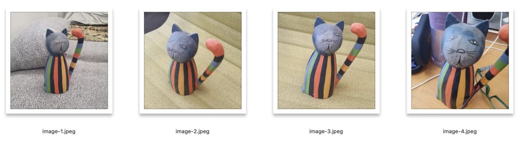 演示中我们使用了一个猫玩具的4张图片,通过工具进行了512×512统一尺寸裁剪。
