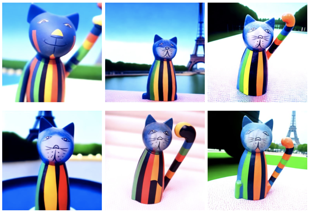 Stable Diffusion 模型可以实现文生图、图生图的丰富图像生成场景,但让一个真实的特定现实物体出现在图像中时,最先进的文本生成图像模型也很难保留其关键视觉特征,即它们缺乏模仿或再现给定参考集中主体外观的能力,此类模型输出域的表达性有限,即便使用 Textual Inversion 微调对对象进行精确文本描述,或者 hypernetwork 进行风格保持,它们也可能产生具有不同外观的实例。
