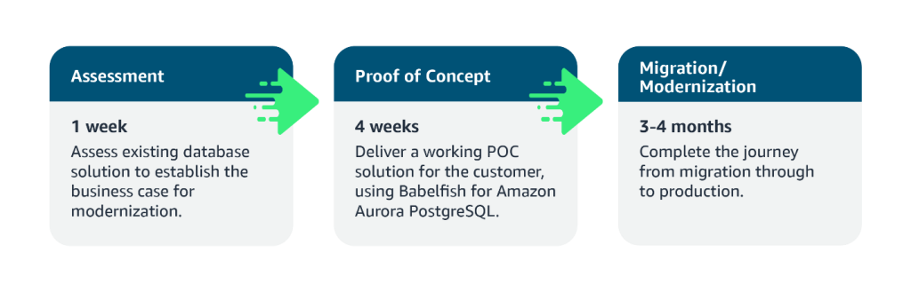 在成功的 PoC 之后,我们将帮助客户将其生产 SQL Server 数据库现代化为 Babelfish 的 Aurora PostgreSQL。根据所涉及的工作负载的复杂性,我们需要3-4个月的时间来将客户的整个数据库迁移到 Amazon Aurora。