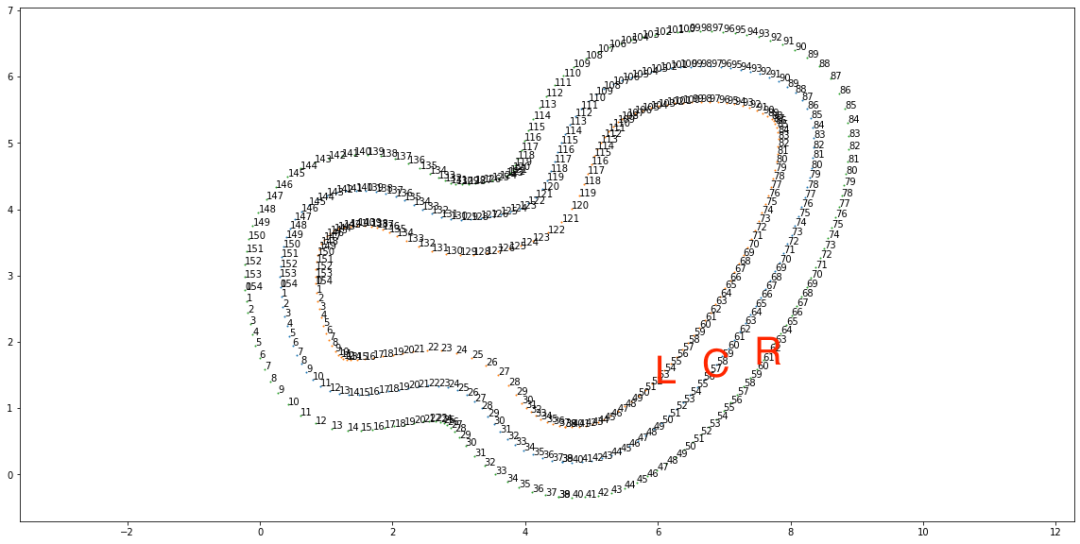 Waypoints 代表了赛道上的每一个位置,Waypoints 一共有3组(L = 左边, C = 中心 and R = 右边),在地图上一共有154个数字,不同的赛道的 Waypoints 也不尽相同。