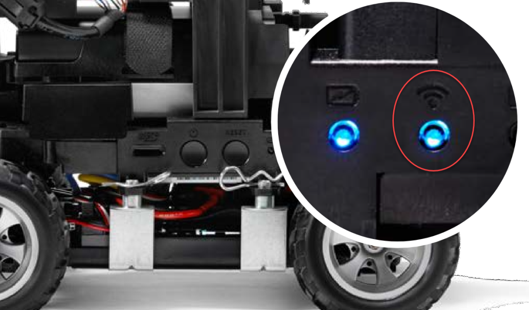 ● 确保 DeepRacer 正确连接 WiFi,车辆的 WiFI 指示灯为蓝色时,则车辆连接成功,如为白色,则表示尚未连接;