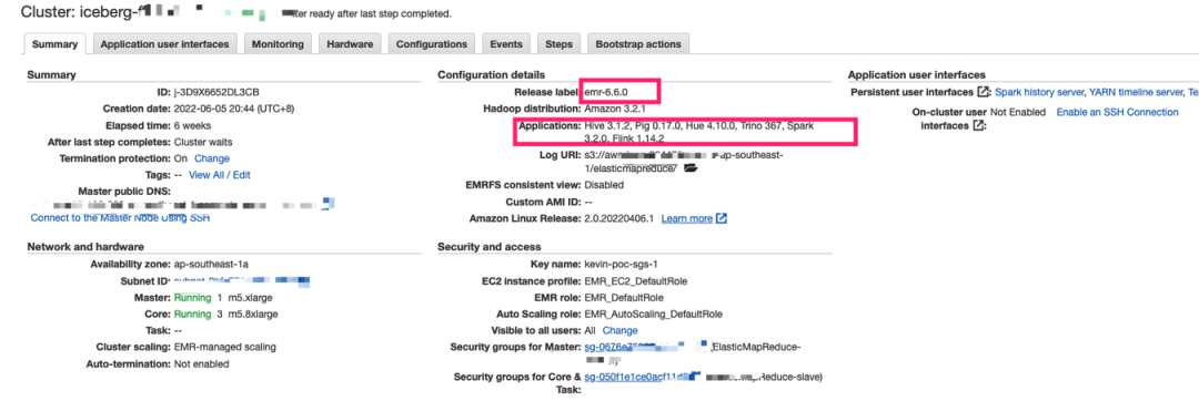 创建含有 Flink、Spark 等组件的 EMR6.6 (使用Amazon EMR 6.6 版本演示。启动 EMR 集群非常简单,这里不再赘述,可以参考亚马逊云科技官方文档)。