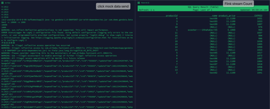 实时发送 mock data,可以看见 Flink 实时统计数据在变化。