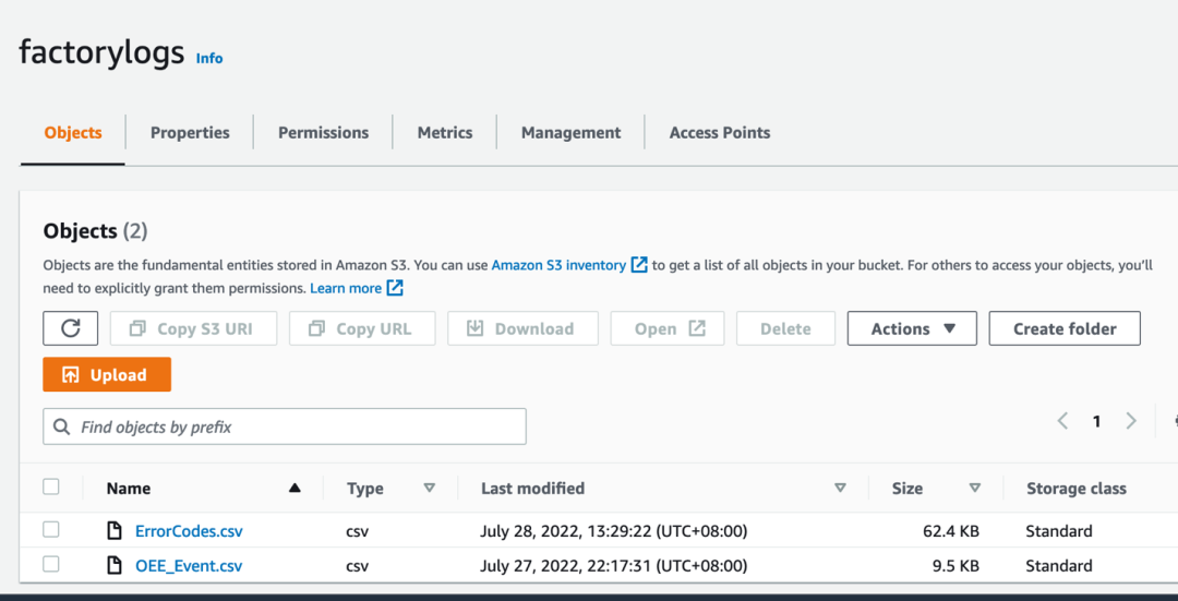 logs_bucket='factorylogs'err_codes_data_key = 'ErrorCodes.csv'err_codes_data_location = 's3://{}/{}'.format(logs_bucket, err_codes_data_key)event_data_key = 'OEE_Event.csv'event_data_location = 's3://{}/{}'.format(logs_bucket, event_data_key)