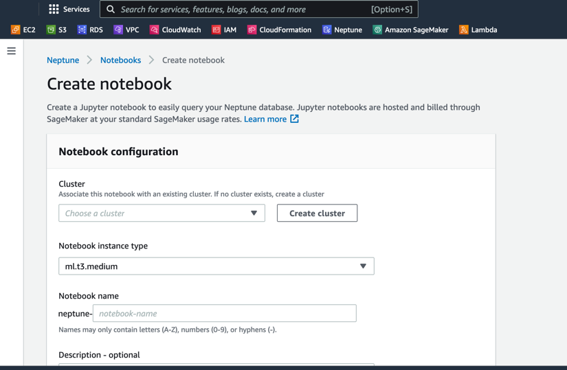 1) 创建 Neptune Workbench:
