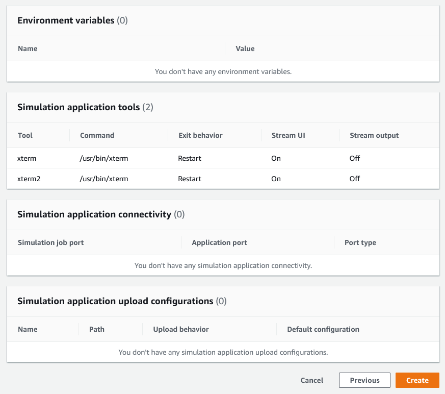 最后,在下一个屏幕上检查所有字段是否看起来正确,然后选择 Create (创建)。这将启动您的模拟作业。