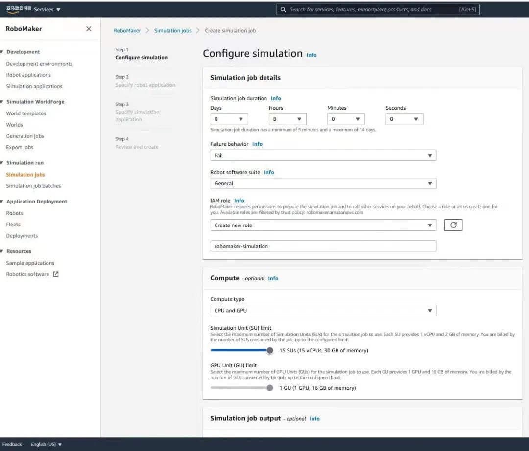 选择 Create new role (创建新角色) 和“robomaker-simulation” 作为您的 IAM 角色名称。