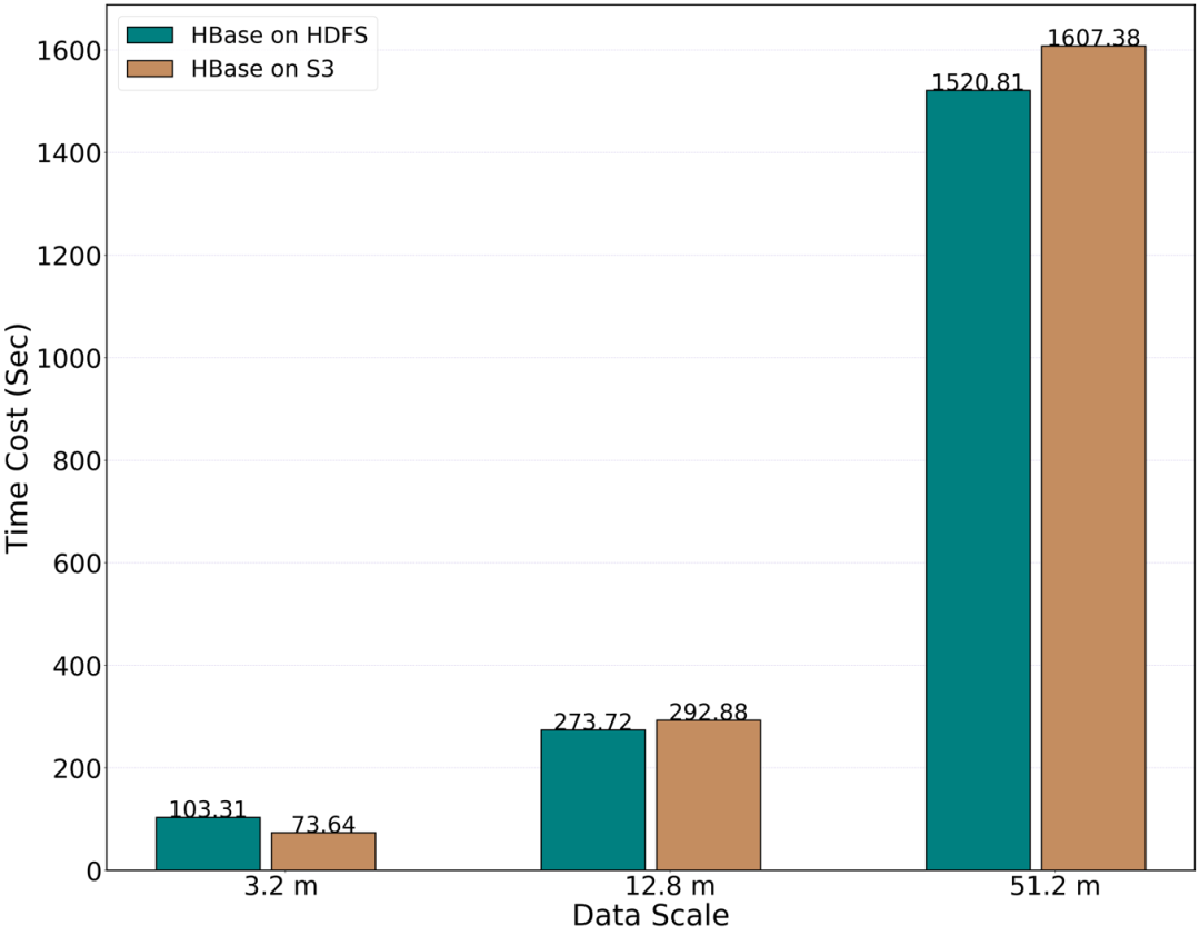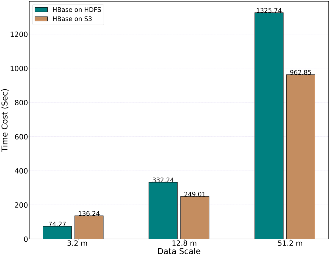 可以看出在进行读操作时,HBase on S3 有性能优势。