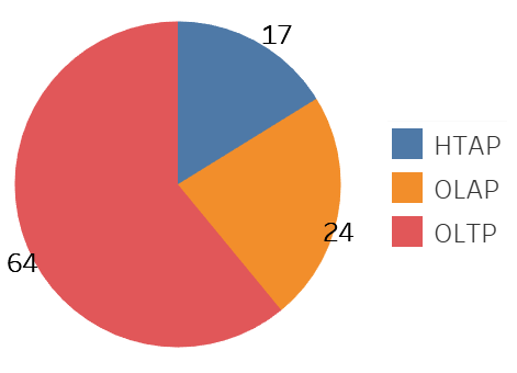 无论是传统的 OLTP 和 OLAP 业务,还是新兴的 HTAP 业务。只要是对规模、算力、一致性有着更好的要求,分布式架构都可以在一定程度上解决。当然从使用场景来看,不同架构占比还有所差异。从观察来看,对于 OLAP、HTAP 场景,因其承载数据规模及算力要求更大,分布式产品更有优势。