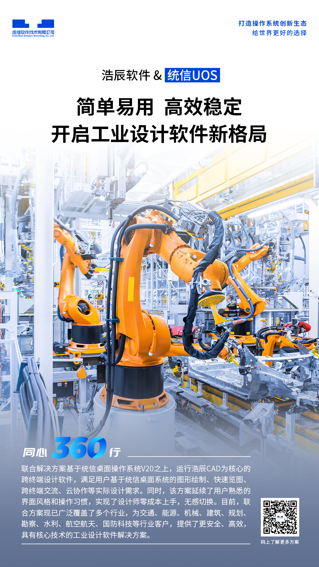 为此,国内领先的研发设计类工业软件提供商苏州浩辰软件股份有限公司(以下简称“浩辰软件”)携手统信软件,共同推出基于统信UOS操作系统的CAD设计解决方案。