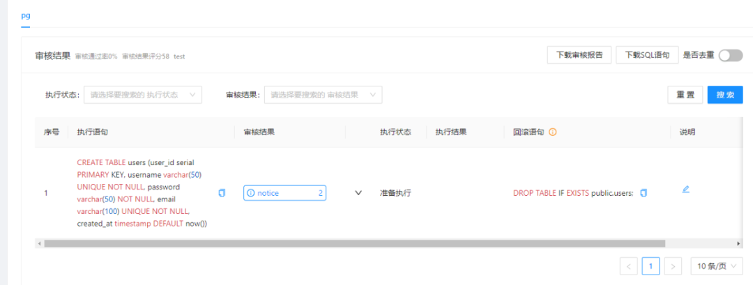 本期在审核环节新增了对 PostgreSQL 数据源的回滚语句支持,方便 DBA 执行线下回滚操作。以下是一个简要的示例: