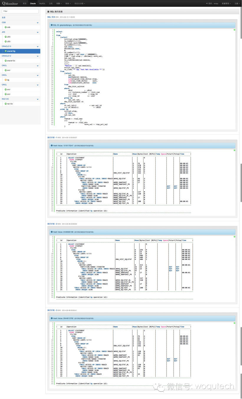 SQL执行计划的变更历史能获得每次执行计划的变更时间,这个功能曾经帮助我们在客户现场发现了难题,客户的某些SQL的执行计划总会周期性的变成全表扫描,最后发现是客户DBA不正确的统计信息收集和数据清理的顺序所导致的。