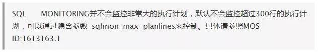 并行执行的SQL将全部被监控到,不需要等待CPU或IO时间超过5秒。对于这一点也比较好理解,一般并行查询的SQL都是报表类或比较重的任务类的SQL,因此会自动打开SQL MONITORING的功能。