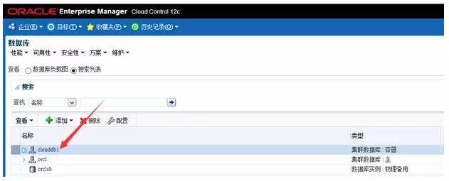 首先登陆Oracle EMCC,进入到【数据库】页面,选择你需要监控的数据库,这里以clouddb1为例: