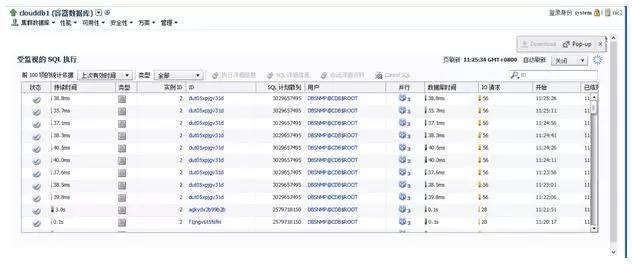 状态列一般包含以下4种状态:运行、完成、排队、错误,将鼠标放在状态列的符号上面,会看到符号所代表的状态。这几个状态除了【排队】状态都比较好理解,排队这个状态只会在大于11GR2版本出现。ORACLE 11GR2在并行设置方面起了很大变化:自动并行度调整、并行语句队列、内存并行执行,启用此三项新特性需要设置参数parallel_degree_policy为auto,默认值为MANUAL。设置为auto后,三项新特性全部被打开,这里我们主要说下并行语句队列,启用该特性后,通过设置parallel_servers_target来指定总的可用的并行子进程的目标数,运行语句时,如果发现可用的并行进程数已经小于待运行语句的目标数,那么语句将会放入队列中等待直到拥有足够可用的并行进程。一旦被加入队列,你就会在SQL MONITORING的监控页面上看到,语句的当前运行状态为【排队】。