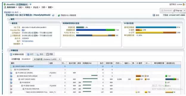 11G以后这些信息全部可以在SQL MONITORING中找到答案,SQL MONITORING提供的功能还不仅仅是上面提到的这些,通过SQL MONITORING还可以轻松获取语句的绑定变量、监控索引的整个创建过程及创建完索引剩余的工作量。