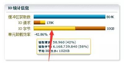 缓冲区获取数,即buffer gets,显示了数据库层的逻辑IO总数。IO请求包含了总的IO请求次数,例如db file sequential read,db file scattered read,direct path read等等的次数,IO字节代表了读取/写入的IO的总字节数。通过条状图的不同有颜色部分,能获取到更详细的统计值,例如上图中显示10GB的IO字节,其中有42%是读取请求产生的,等等。