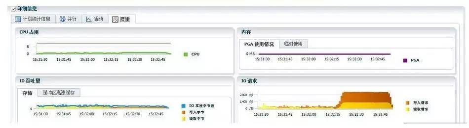 【详细信息】的【度量】页显示了查询 过程中对CPU、内存、IO的占用率。