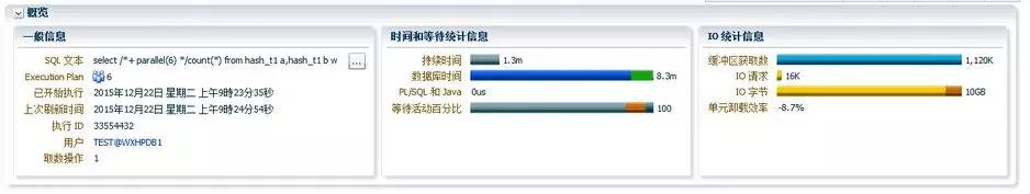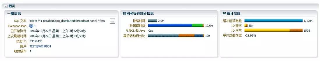 SQL运行时间2分钟,由于使用了并行我们从上图可以看到DB TIME 12.6分钟远大于SQL运行时间2分钟。