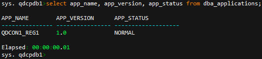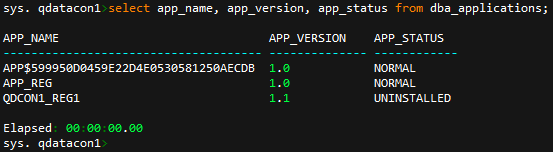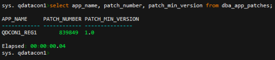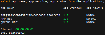 查看dba_applications视图,确认qdcon1_reg1是否已经安装