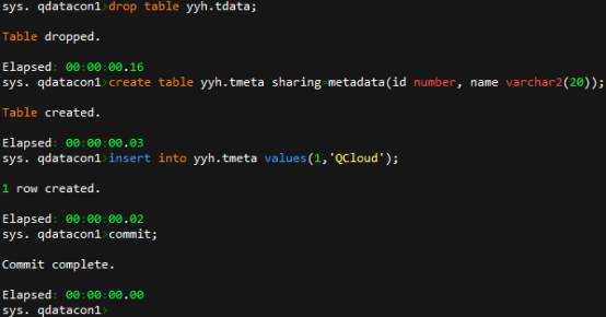 tdata被删除/tmeata的创建已同步到qdcpdb1中。