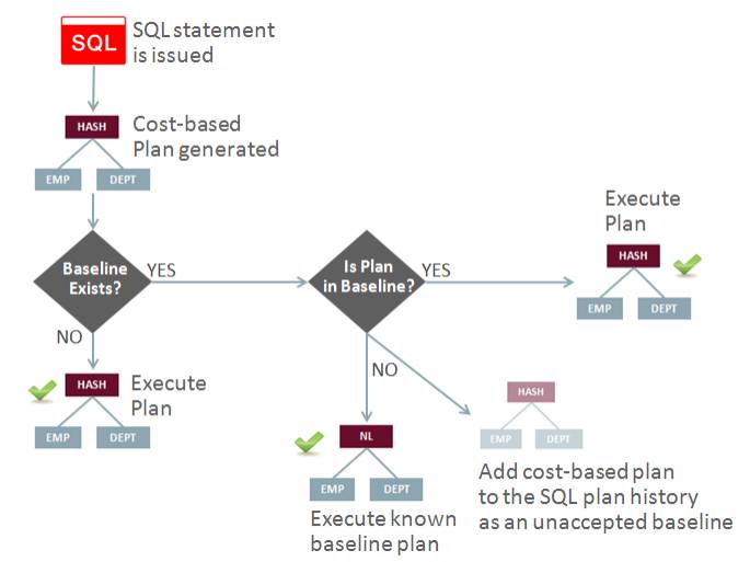 任何数据库应用程序的性能严重依赖于一致性查询语句的执行。而oracle优化器非常适合在没有用户干扰的情况下产生最佳执行计划。但SQL语句的执行计划会有不可预测的变化,原因包括重新收集优化器统计信息,更改优化器参数或对象元数据定义。由于缺少一个执行计划的改变总是好的保证,一些客户会选择固定他们的SQL执行计划(stored outlines)或者锁定优化器统计信息。然而这样做就会影响他们应用新的优化器功能(比如新的访问路径),这些对改进都是执行计划有帮助的。解决这个难题的最理想方法就是在环境中保留当前的执行计划,并且只在有更好的执行计划的时候再去做改变。