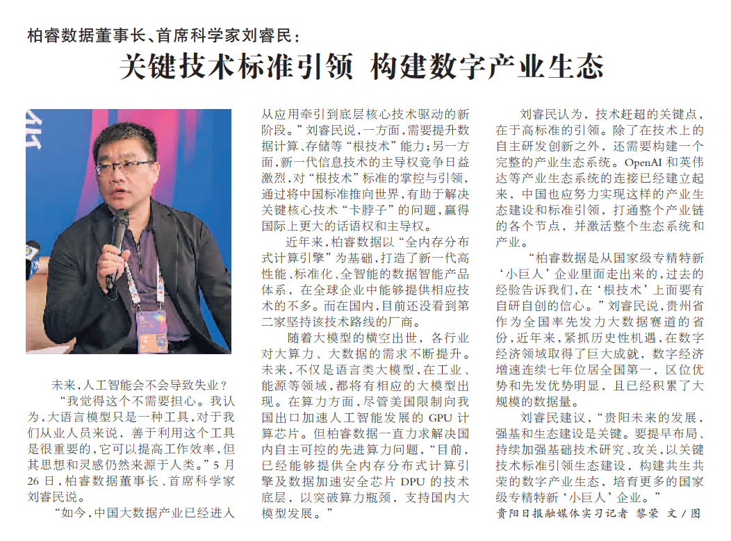 柏睿数据一直围绕“根技术”攻坚克难、持续创新,确保其独立自研的产品能够支撑我国数字经济在未来 5-10 年的持续快速发展。柏睿数据推出的高性能、标准化、全智能的数据智能产品体系和完善的解决方案,覆盖从数据集成到数据应用的数据全生命周期应用,为政府和企业数字化提供安全、可靠的数字基础设施,为数字经济发展提供核心基座支撑。