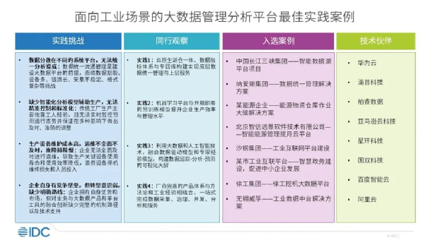 近日,IDC发布《面向工业场景的大数据管理分析平台最佳实践案例》,总结了行业用户在应用过程中面临的四大挑战和实践路径,并评选最佳实践案例,国双负责搭建的某市工业互联平台入选工业大数据平台智能运维类别领导者实践。