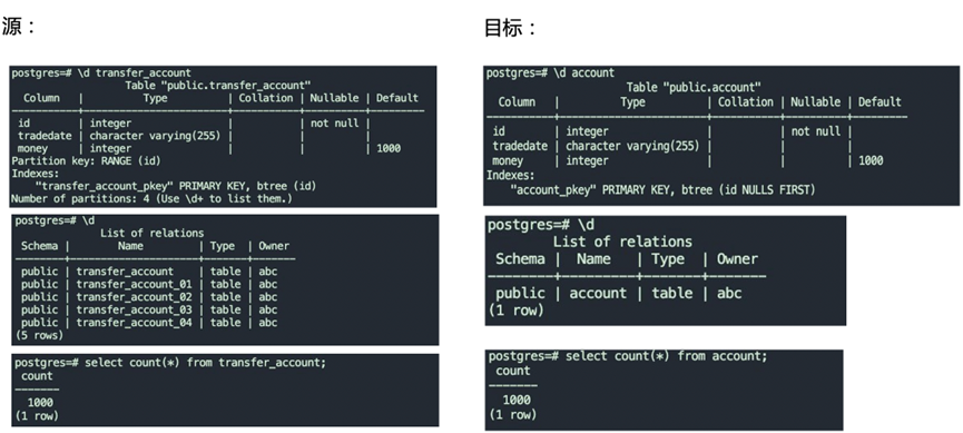 列顺序:源表所有列名在新表必须都出现,但是这些列的顺序可以不同。新表可以增加更多的列,但是这些列必须具有default值或者允许NULL值。一个online DDL 可以同时做多个操作,如:新增列(可以加到该表的任意位置),调整列顺序以及调整列的约束和default值。 列数据类型:源表和新表同名的列的数据类型必须完全相同或属于同一个大类,并且目标表的数据类型可以更宽,但不可以更窄。例如,二者都是整形,源表列如果是int, 那么目标表对应列 可以是 bigint,但是不可以是 smallint、tinyint; 索引:源表和新表可以有完全不同的索引定义和主键定义。但是源表的数据必须能够满足新表的所有唯一索引和主键的约束,否则数据导入会失败。例如新表就是为了修改主键,或者增加索引或者唯一索引。 分区:源表和新表可以有完全不同的 表分区规则、表分区参数。源表和新表都可以是 单表、镜像表、分区表 中的某一种。例如源表是单表,未分区,新表按照某种规则分区; 表约束:源表和新表可以有不同的表级 check 约束和触发器定义,但是源表的数据必须能够通过新表的 check 约束否则数据导入会失败。
