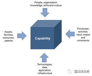 能力是公司为实现特定目的或结果而必须具备的特定能力或能力。从这个意义上说,能力将组织与人员及其与给定业务功能相关的角色、流程、程序和技术抽象并封装到一个简单的块中。