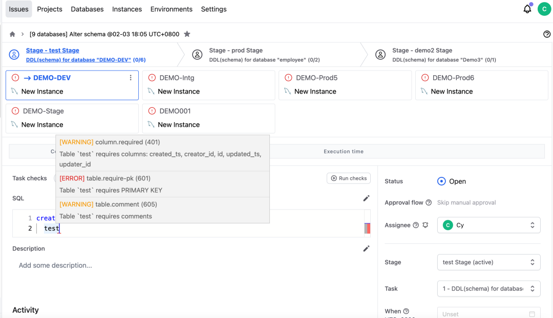 :以 DevOps 理念打造,面向开发者与 DBA 的一站式数据库变更协作平台,同时强调管控与效率,除了面向 DBA 的管控能力外,提供了较多面向研发团队的提效功能,尤其有强大的 SQL 变更版本管理与变更发布能力,并实现了与上下游研发工具预集成。