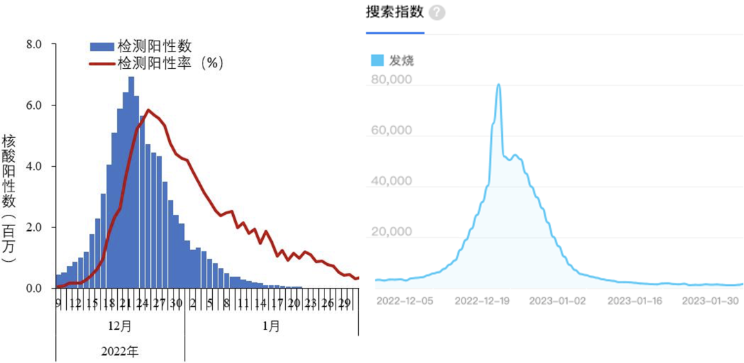 据了解,“二阳”人群症状的显著程度普遍弱于“首阳”,很多小伙伴的态度也从“新冠猛于虎”转变成“不过Hello Kitty”,“二阳”人群在互联网上与“发烧”相关的搜索、声量也明显减少,因此通过发烧指数计算出的感染指数可能会比实际情况偏小。