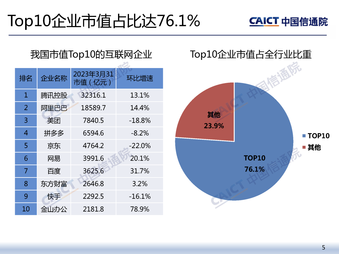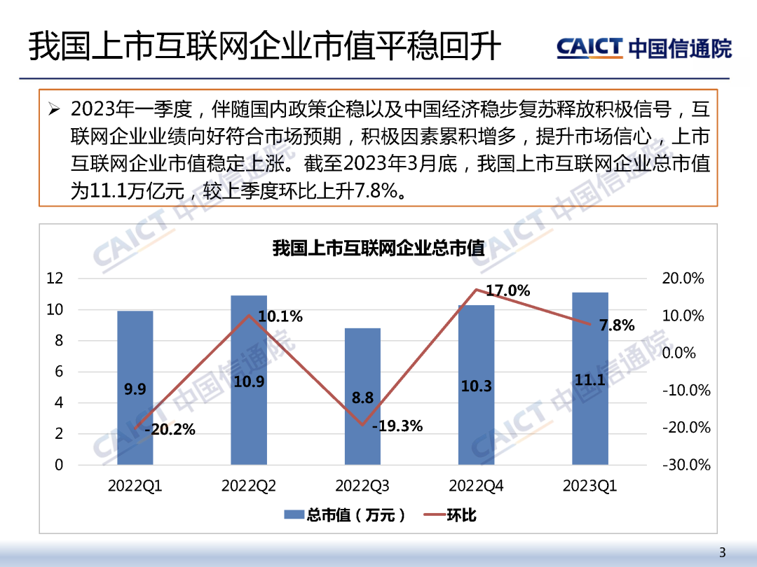 日前,中国信息通信研究院政策与经济研究所互联网运行分析团队发布了《2023年一季度我国互联网上市企业运行情况》报告。