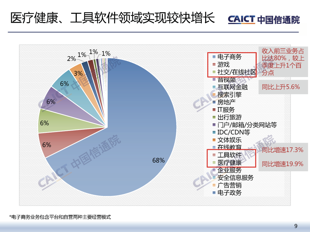细分领域中,医疗健康、工具软件等业务实现高速增长;