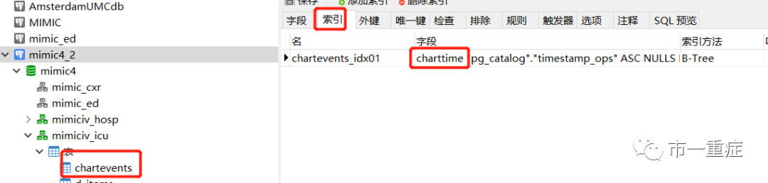 要对chartevents的itemid查询加速,就建立这个字段的索引。在navicat里面打开这个表,新建查询,输入下面这句