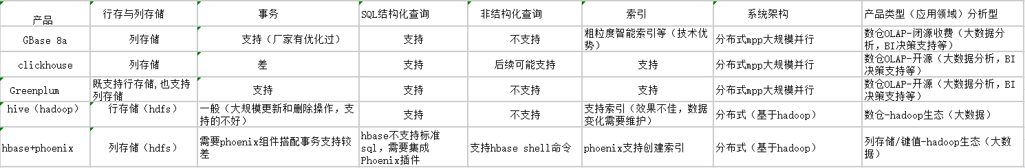 近几年国内大数据行业迅速发展,社会上对于大数据方面的技术和人才需求越来越大。目前市面上所使用的大数据分析软件系统架构,主要分为MPP架构和Hadoop架构。基于此我做了关于GBase 8a MPP数据库与市面上常用的大数据分析数据库软件进行了简单的比较,以供参考: