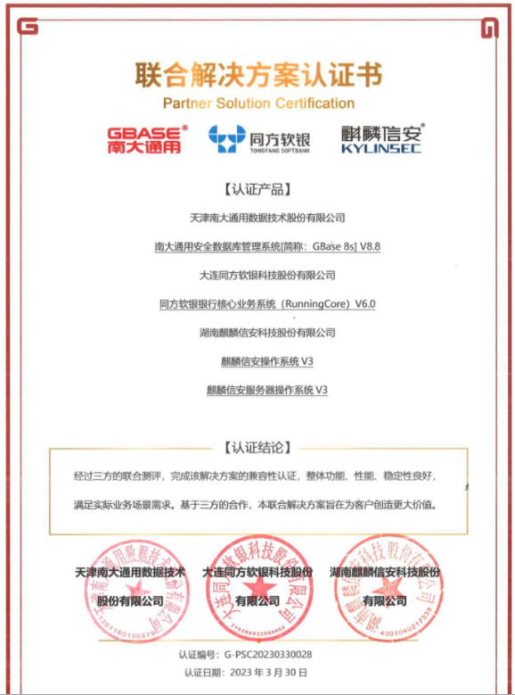 该方案实现了服务器、操作系统、数据库、核心业务系统应用的全栈国产化,保障金融信息安全,为金融机构提供了安全可靠的国产化核心业务系统的一体化解决方案。