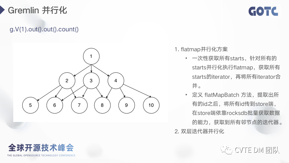 最上面的Graph接口,支持了网络迭代器和算子下沉的接口,hugegraph 就是基于此做的查询优化。2.10 Gremlin 并行化