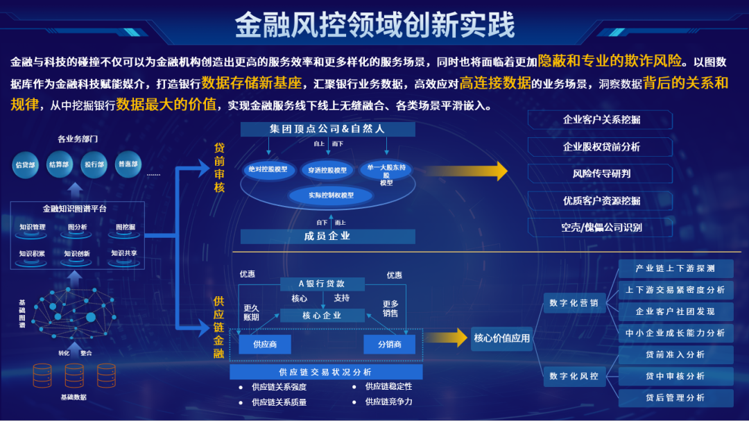 金融与科技的碰撞不仅可以为金融机构创造出更高的服务效率和更多样化的服务场景,同时也将面临着更加隐蔽和专业的欺诈风险。以图数据库作为金融科技赋能媒介,打造银行数据存储新基座,汇聚银行业务数据,高效应对高连接数据的业务场景,洞察数据背后的关系和规律,从中挖掘银行数据最大的价值,实现金融服务线下线上无缝融合、各类场景平滑嵌入。