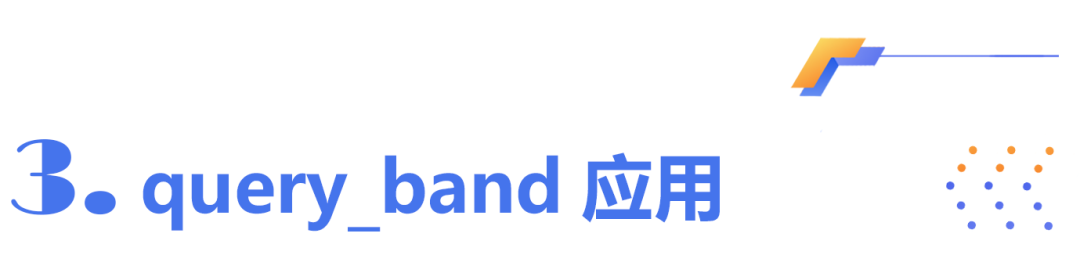 示例:SET query_band = ‘JobName = abc ; AppName = test ; ApplicationName = jdbc’。