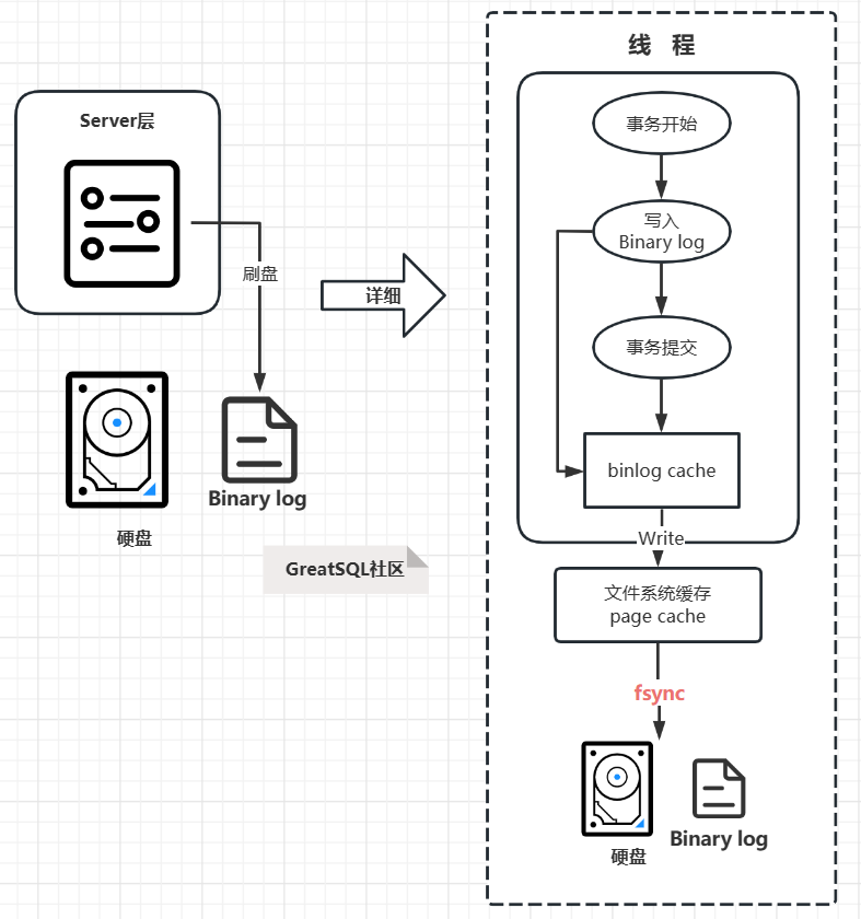 参数控制单个线程binlog cache大,如果存储内容超过了这个参数,就要暂存到磁盘(Swap)。binlog日志刷盘流程如下: