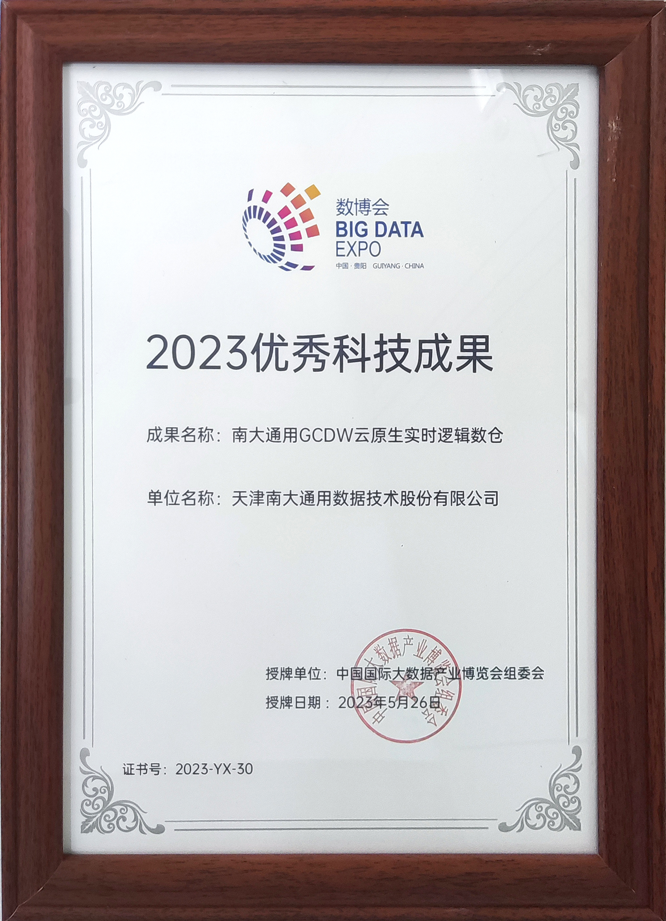 5月26日,“2023中国国际大数据产业博览会”在贵阳盛大开幕,同日举行了“领先科技成果发布会”,来自国内外高校、科研机构、科技企业的357项优秀成果参与申报,代表了近年来国内外大数据领域最前沿的科技成果。“南大通用GCDW云原生数据仓库”获评“2023优秀科技成果奖”。