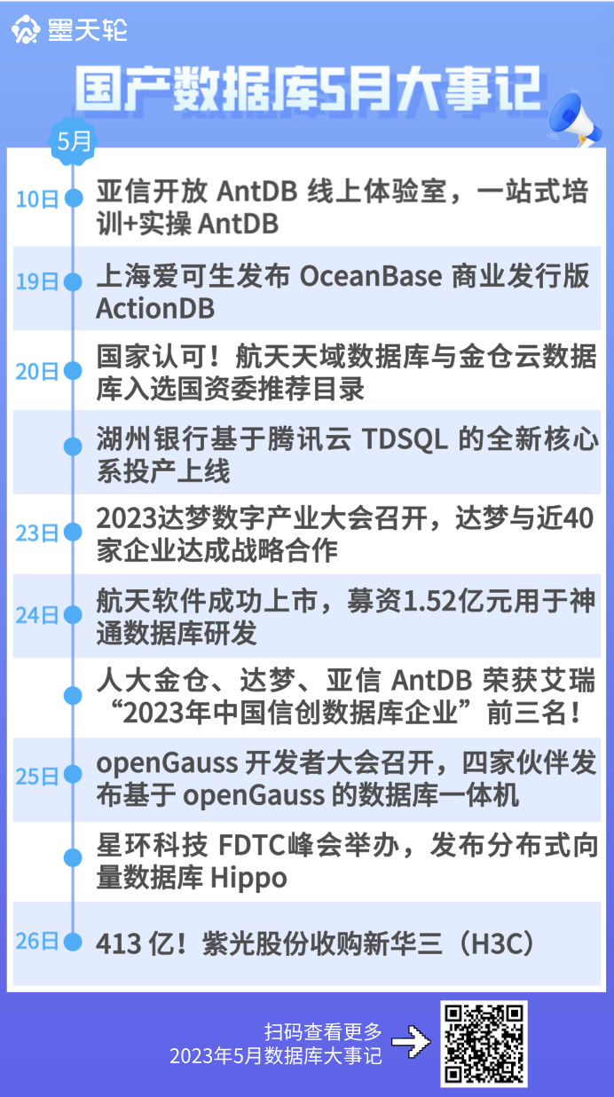 本文整理了2023年5月国产数据库大事件和重要产品发布消息。
