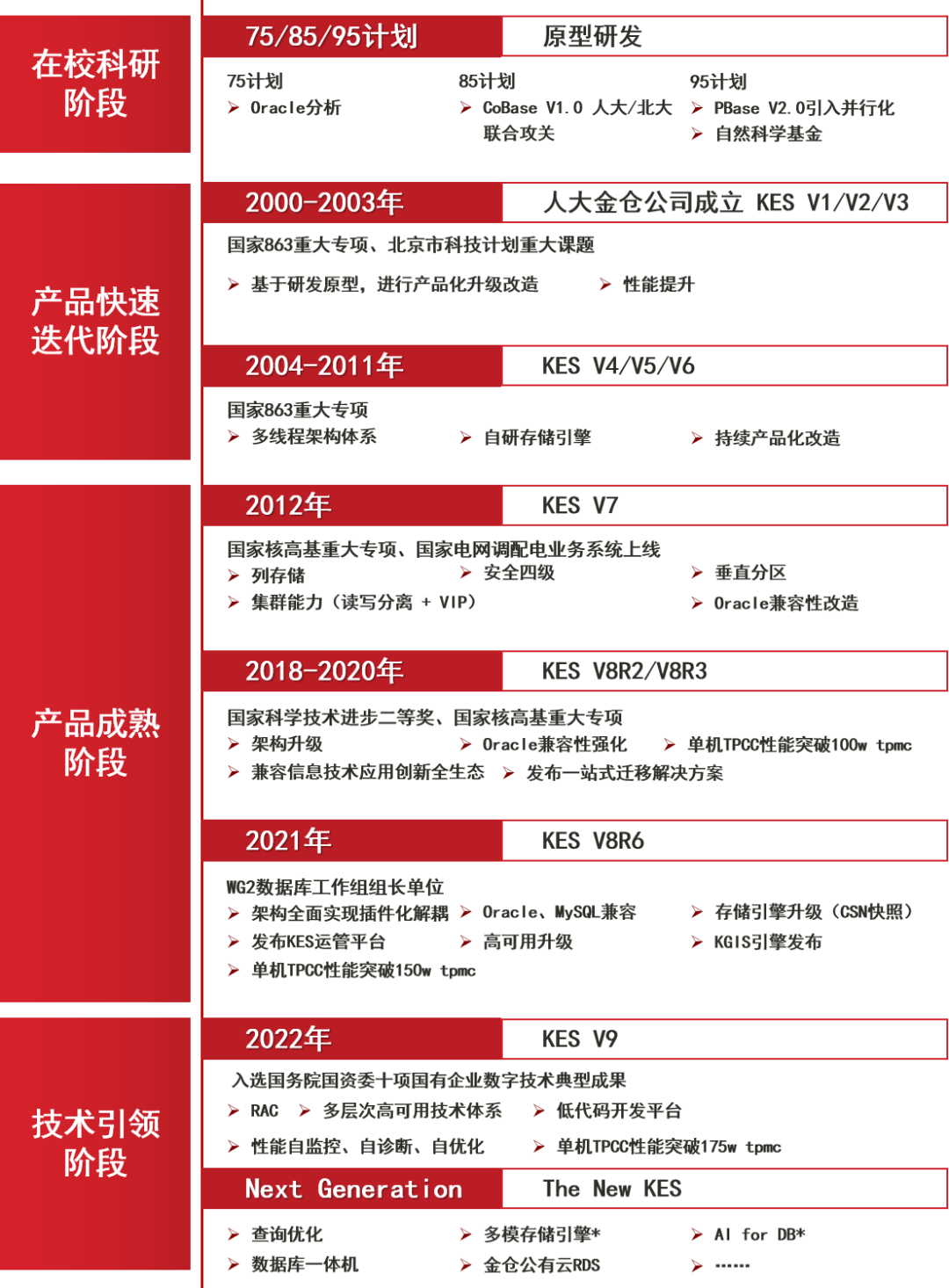 人大金仓融合Easybase和“小金灵”的科研成果,继承PBASE自主创新的基因,以其独立自主的研发团队、技术路线和产品规划,在产研一体化的基础上,成功研制出了大型通用关系型数据库KingbaseES第一代产品,也为之后产品自主创新之路奠定下夯实的基础。