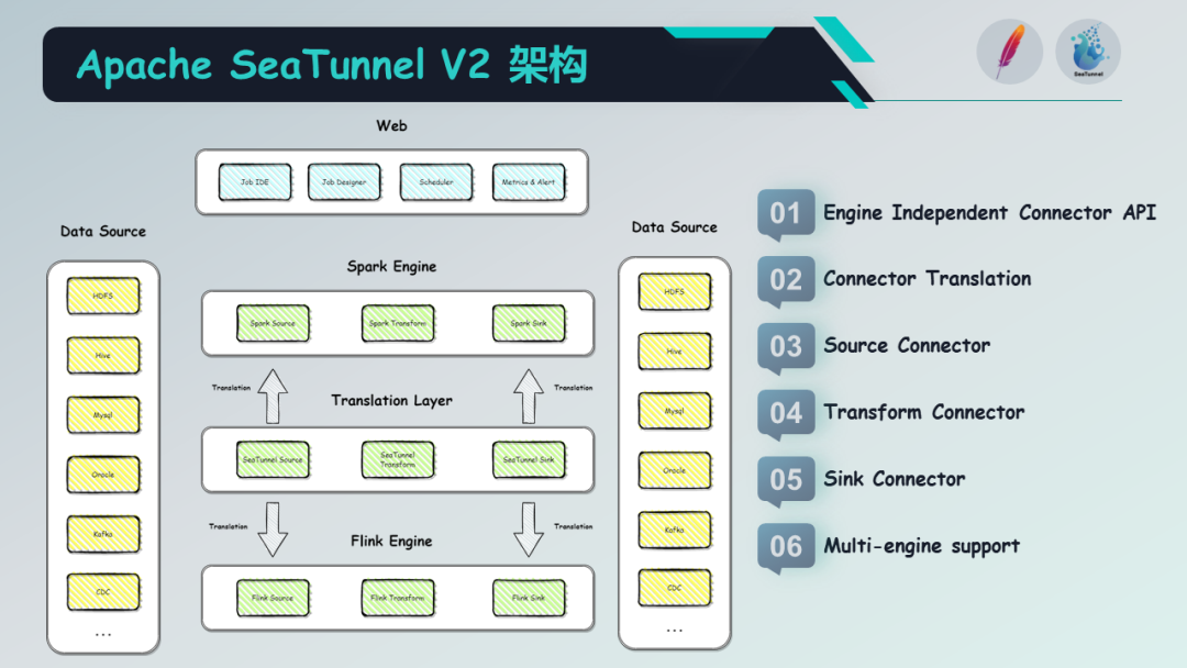 然后,让我们来看一下 Apache SeaTunnel V2 的架构。